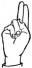 На ћирилици написано МИНА ЂАКОВАЦ састоји се из 11 слова [?]. Исписано ћириличном једноручном азбуком за глувонеме: